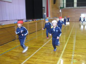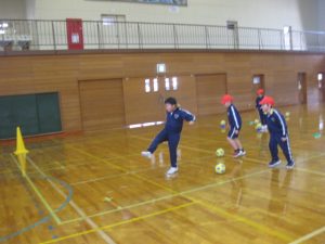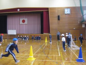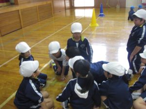 準備体操の後には、3分間走に取り組みました。自分の目当てを達成するために、一生懸命走る様子がみられました。ボール蹴りゲームでは、チームのみんなと作戦を考え、得点を取るために協力して取り組みました。