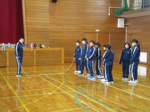 縄に引っかからないで30秒間に1回でも多く跳ぶことができるように、「間を空けずに跳ぶこと」や「縄の真ん中で跳ぶ」ことを意識して練習してきた成果を出そうと、本番前の練習から真剣に取り組む姿がみられました。