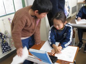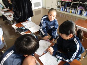 自分で考えたあとは、もう少し一人でじっくり考えたり、友達と考えを伝え合ったり、友達や先生から考え方のヒントをもらったりするなど、課題解決に向けて頭をフル回転している様子がみられました。