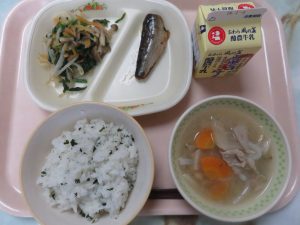 給食では、「いわしの梅煮」と「鬼除け汁」をいただきます。