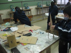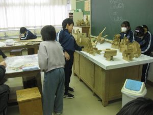 また、図画工作科では、互いの作品を並べて「段ボールのタワーで街ができたよ!」と喜ぶ声がありました。