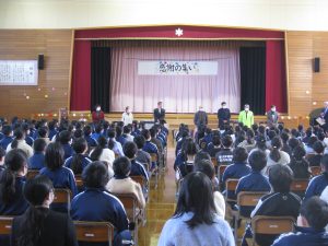 3年生は姿勢良く座ったり、大きな拍手をしたりして感謝の気持ちを伝えました。