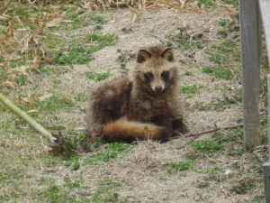 プールの横に狸?も顔を出しました。