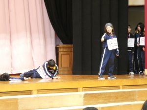また、5年生の発表では、6年生の思い出の行事を劇で発表し、6年生を笑顔にすることができました。