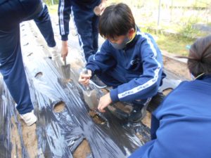 理科では、ジャガイモを植えました。