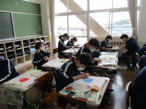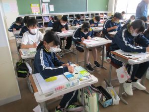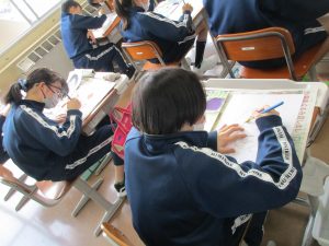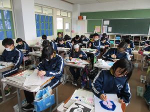 学習参観で掲示する予定なので、仕上がりが楽しみです。
