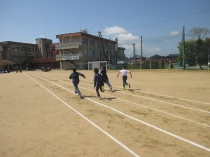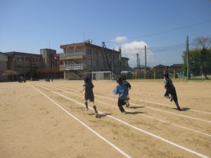体育科では、50メートル走のタイムを計ったり、100メートル走に挑戦したりしました。