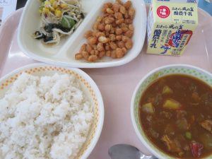 ごはん ぎゅうにゅう さばのカレーやき くきわかめのきんぴら なめこじる <おはなし献立4> おはなし献立4日目の今日は「やきざかなのろい」という絵本からです。 少年は焼き魚が嫌いです。なぜなら骨があって食べにくいし、苦