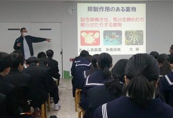 12月1日(月) 6限 学校薬剤師の長澤先生を講師に、薬物乱用防止教室が行われました。 酒やたばこの害、そして、薬物依存の恐ろしさについて、クイズなども交えながら分かりやすく丁寧に説明していただきました。 特に、ドラッグ