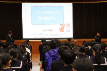 12月16日(火) NECより講師をお招きし、ネットトラブルについてご講演いただきました。 軽率な動画投稿から起こるトラブル、ゲーム依存により充実した生活を失うリスク、不確かな情報を拡散してしまう危険性に関する動画を視聴