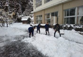 1月26日(月) 朝 先週から雪の多い日が続いています。そんな中、毎朝早くから除雪を手伝ってくれる生徒や教職員がたくさんいます。 全校生徒や送迎の車が通りやすいように、ピロティ前や来賓駐車場、藤棚前などをきれいに除雪し、