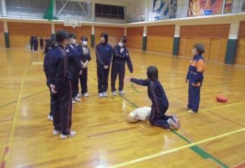 2月17日(火) 2学年を対象に心肺蘇生法講習会がありました。 氷見消防署の消防士・消防団員の方々を講師に迎えて、心肺蘇生について学びました。 前半は講師の方の実際の経験を交えながら、救命に関する講話をしていただきました
