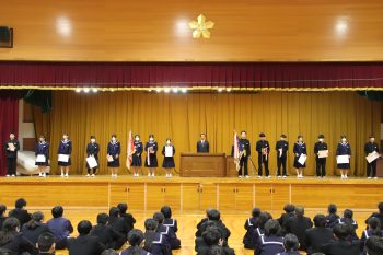 2月25日(水)4限 賞状伝達式が行われました。 冬季大会や書初大会、造形コンクール作品など様々な分野で活躍をした生徒たちが表彰を受けました。 今年度も非常に多くの生徒が活躍し、表彰されました。来年度からもさらなる活躍を