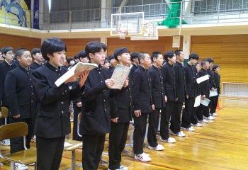 3月4日(水) 明日、明後日に実施される県立一般入試を受検する生徒に向けて激励式が行われました。 激励式では、校長先生より、入試を油断せず受けてきてほしいという思いを込めた「藎己竢成(じんきしせい)」という言葉をいただき