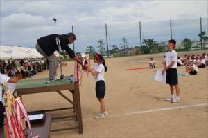 本校の1学期最終日は全校生徒が体育館に介しての過ごします。