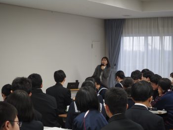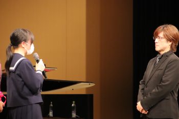 最後に本川さんが氷見市の生徒代表でお礼の言葉を述べました。夢をもつこと、夢の実現にむけてひたむきに努力することを忘れず、今後の学校生活を過ごしたいという思いを、澤武さんに力強く伝えました。
