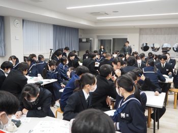 前半の部では、氷見高校、高岡龍谷高校、高岡第一高校、高岡向陵高校の4校から先生方に来ていただき、各学校の魅力や選抜入試についてお話を聞きました。