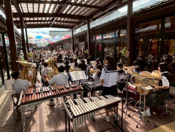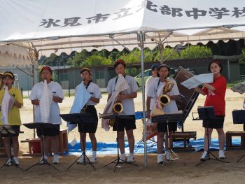 ひみ番屋街にて吹奏楽部のコンサートが行われました。アニメやディズニーの曲など、計5曲を演奏し、温かい拍手や手拍子をいただきました。
