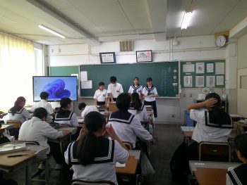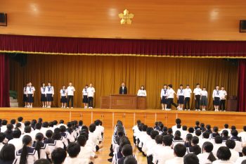 校長先生からは、生徒会とは、任命されたステージ上の人たちだけでなく、生徒全員でよりよい学校を目指して行動していくものであるとお話して頂きました。生徒会役員や2年生全員が中心となり、北部中学校がさらにレベルアップしていけるよう期待しています。
