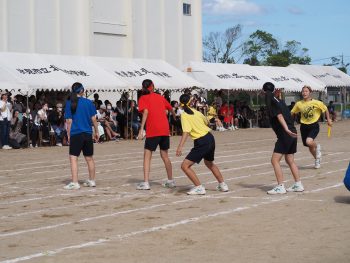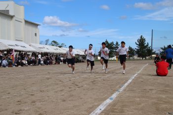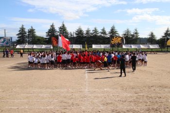 多くの来賓の皆さまや保護者の皆さまにご来場いただき、温かい応援のもと、無事に午前の競技を終えることができました。時折強い風が吹く場面もありましたが、生徒たちの元気な声と笑顔が、会場いっぱいに広がっていました。
