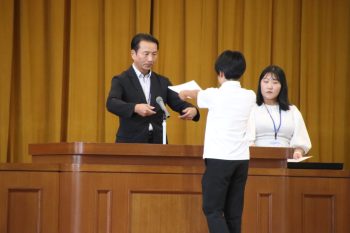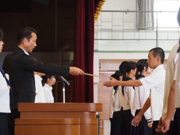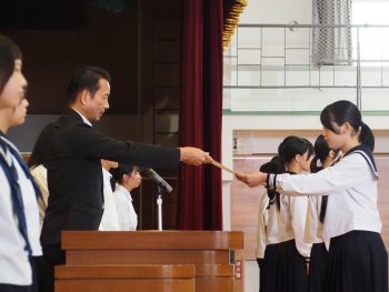 緊張と期待が混じる中、校長先生から任命書を受け取りました。