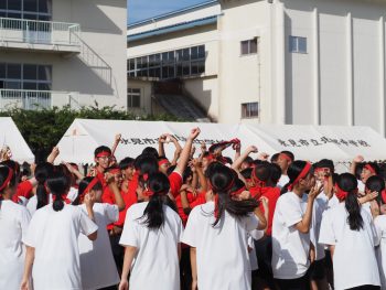 各団の解団式の後、3年生の生徒会が中心となり、全校生徒が一つの大きな円(Ring)になって、運動会の幕を閉じました。