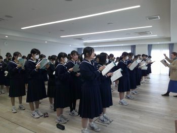 1年生と2年生で、男女のパートに分かれ、卒業式に向けての合唱練習を行いました。