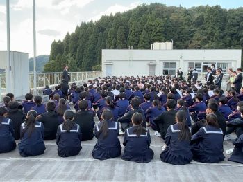 今回の避難訓練は地震と津波を想定されたものでした。一昨年の1月1日に起こった地震と同じような状況の避難訓練に、多くの生徒が「落ち着いて・考えて・真剣に」取り組むことができていました。
