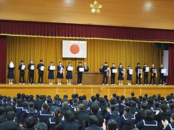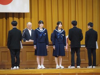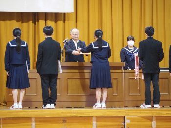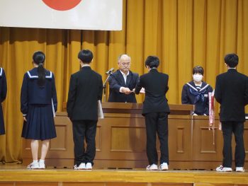 賞状伝達式 2026年4月21日 学校生活の様子 4月21日(火) 氷見市春季大会を終え、賞状伝達式がありました。 3年生はこれから総体に向けての試合が始まっていきます。1日1日の練習を大切に頑張りましょう。