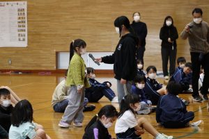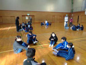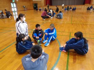 今回の対話タイムは、体育館で全校が集まって行いました。
