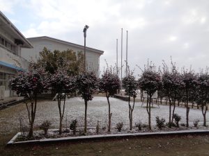 登校してきた1年生や2年生も驚きながら挨拶していました。