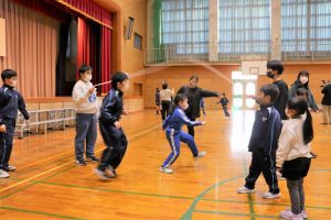 練習開始当初は長縄に入ることをためらう子供も見られましたが、