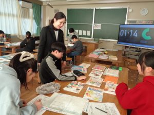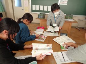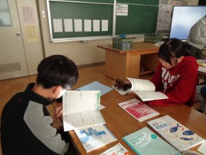 中学校で使われている教材を実際に手にとって見る場を設けていただきました。