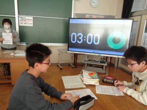1つ目は、1年生とたくさん話をして仲良くなるために、「ワードウルフ」をしました。