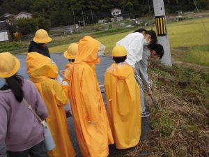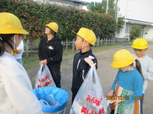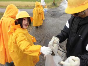 出発する際、小雨が降りましたが、子供たちは雨具を用意し、担当地域に出かけていきました。
