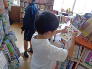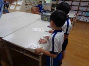 昼休み、様々な本のキャラクターの絵を見付けるゲームに多くの子供たちが挑戦しました。