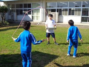 もし、鬼にタッチされたら、縄跳びを規定の回数跳んで復活するというルールです。