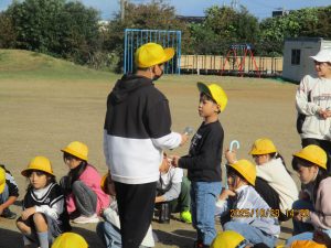 大きなカマキリを見付けたり、ドングリを拾ったりして、自然とも触れ合いました。