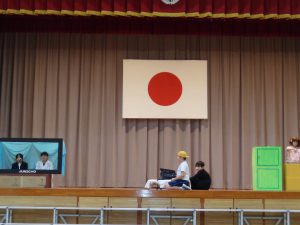 体育館では、3年生が体育発表の練習をしていました。