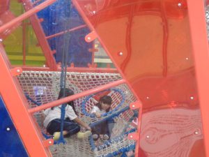 こども未来館の中では、張り巡らされている網やトンネル等の遊具で遊びました。
