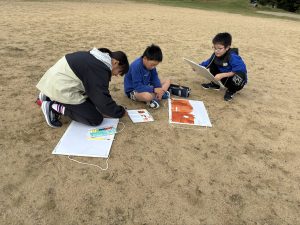 大きなカマキリを見付けたり、ドングリを拾ったりして、自然とも触れ合いました。