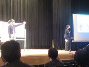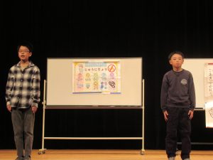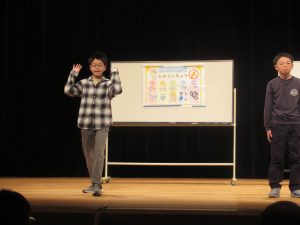 学習発表会で全校やお客さんに呼びかけたりしました。