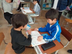 今日の昼休み、図書コーナーでクイズ大会が行われました。