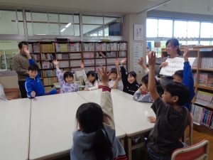 子供たちは、元気よく挙手し、クイズを楽しみました。