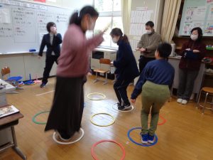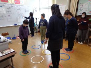 ひまわり学級の友達や先生が集い、ゲームで楽しみました。