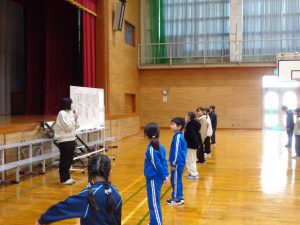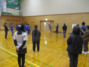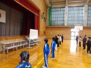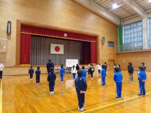 朝活動の時間に、在校生は体育館に集まり、合唱練習をしました。
