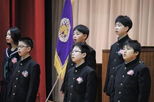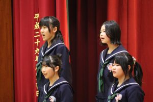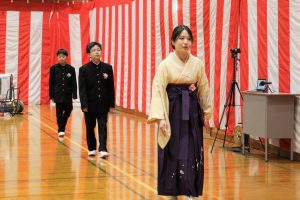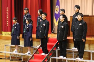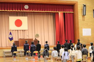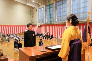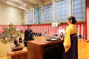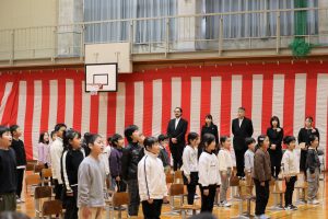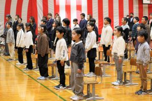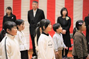 全員の思いがのった校歌の響きが体育館に広がりました。