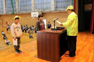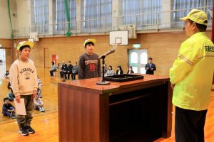 交通安全協会支部長さんから2名の子供が委嘱書をいただきました。