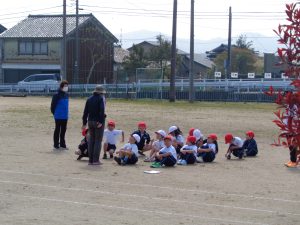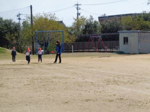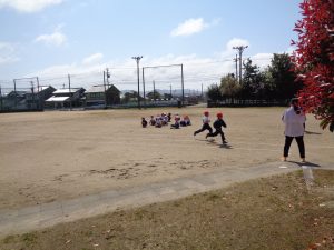 1年生と2年生がグラウンドで体育の学習を行っていました。