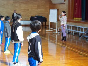 たった45分間の合唱指導でしたが、自然に口が開くようになり、子供たちの歌声がずいぶん変わりました。高学年は歌っている姿勢もすてきです。